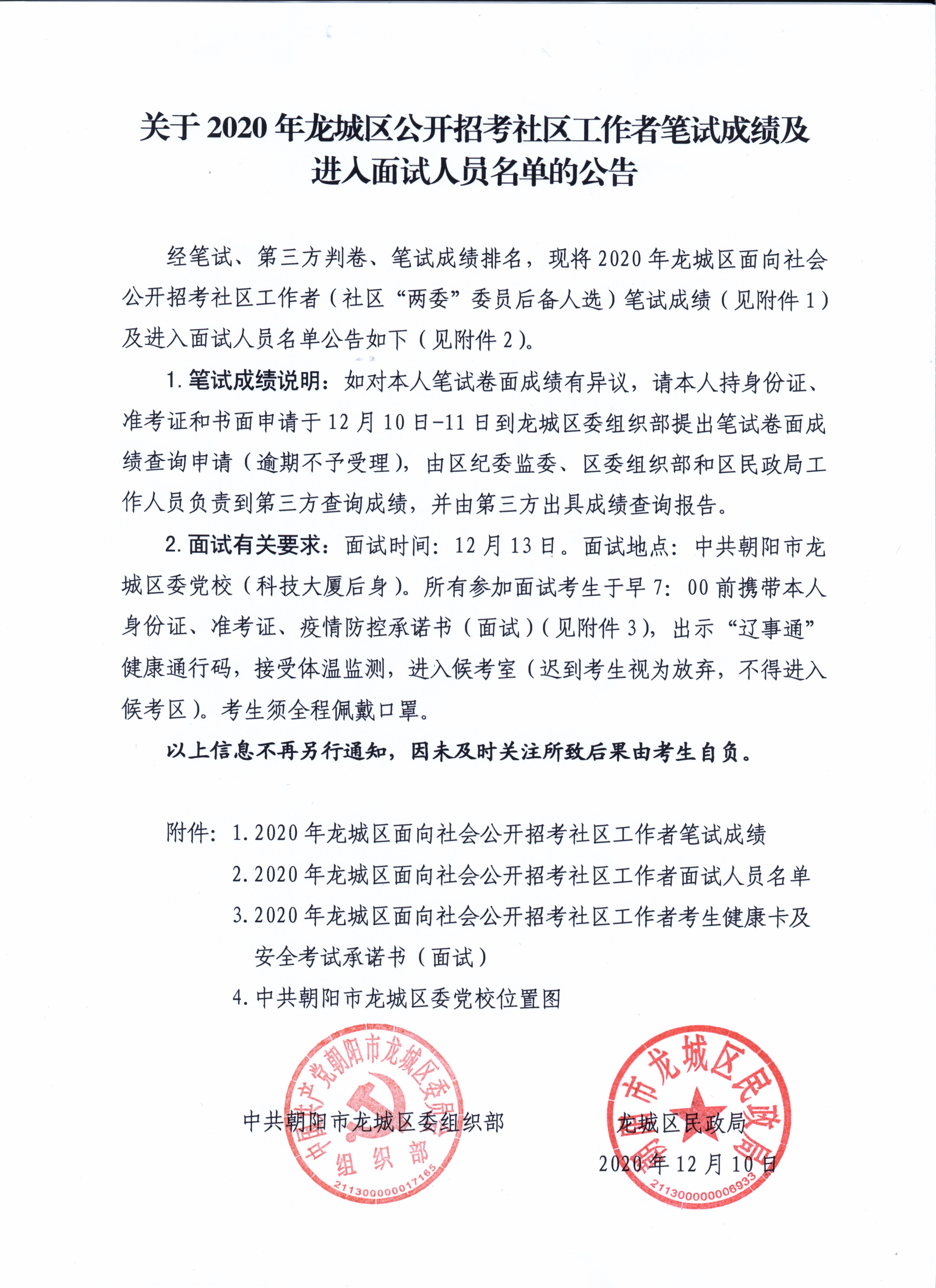 关于2020年龙城区公开招考社区工作者笔试成绩及进入面试人员名单的公告