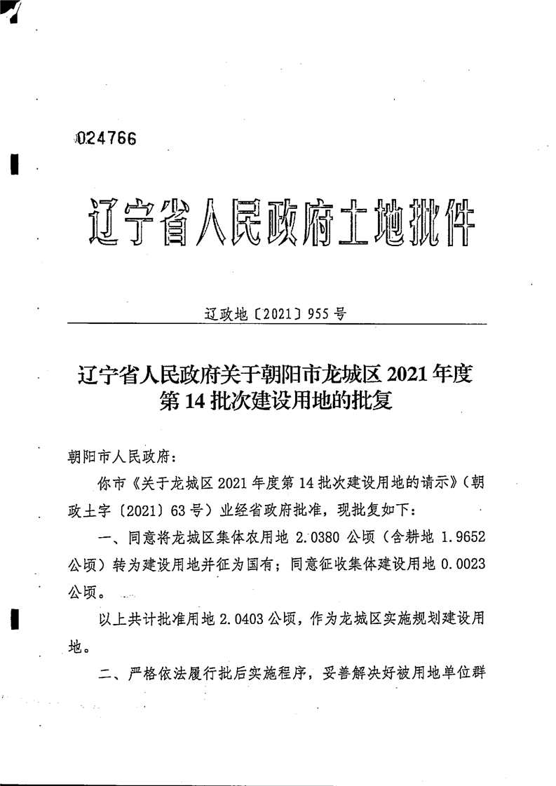 朝阳市龙城区2021年度第14批次建设用地的批复