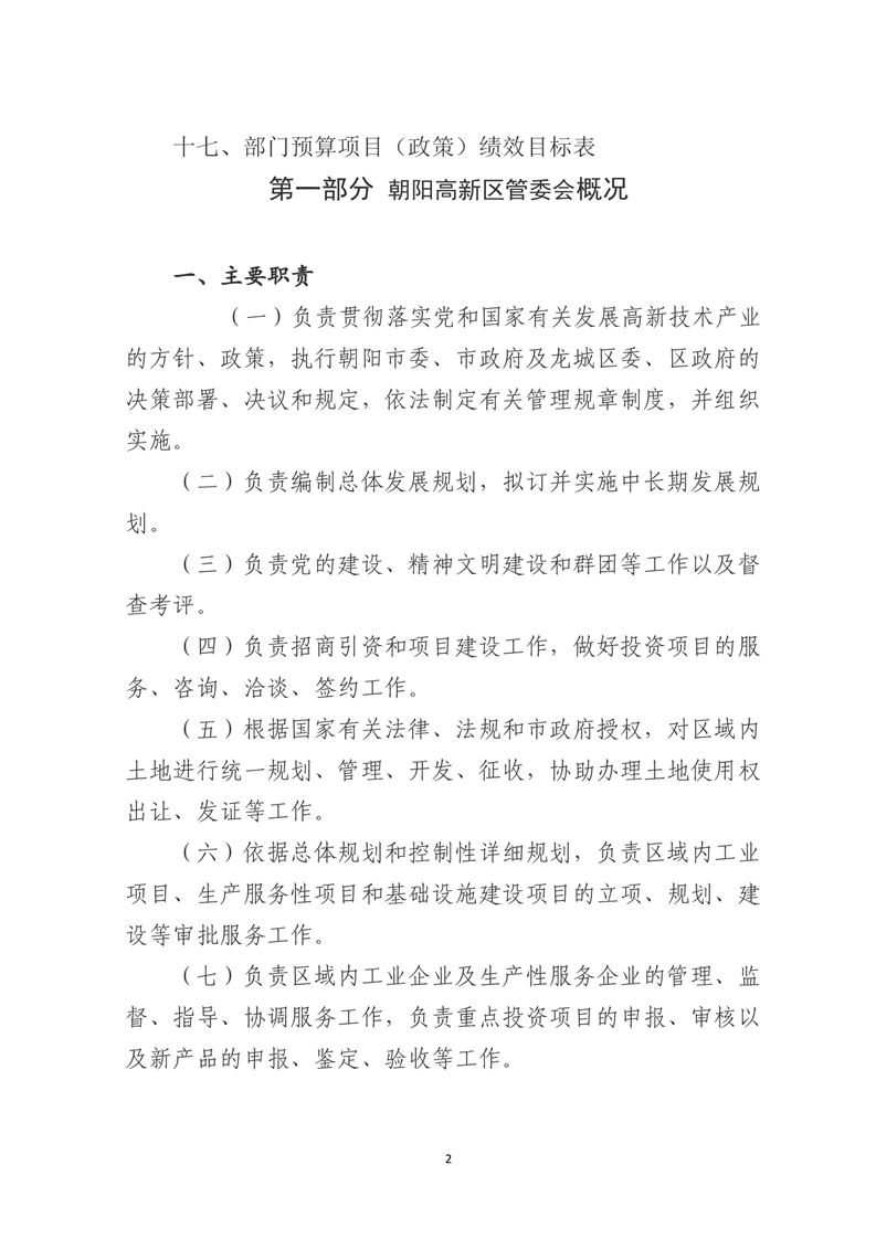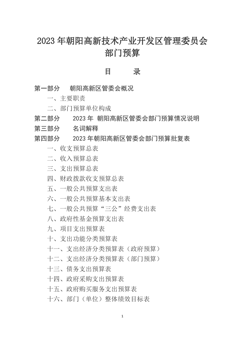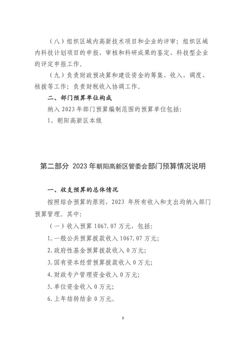 朝阳高新技术产业开发区管理委员会2023年度部门预算