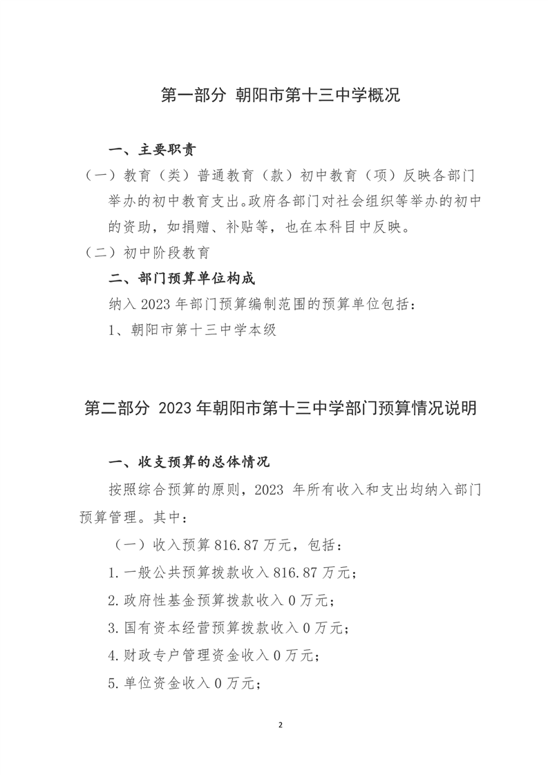 朝阳市第十三中学部门预算 (2023年)