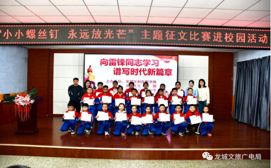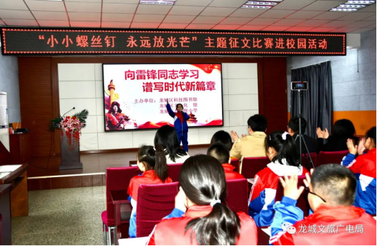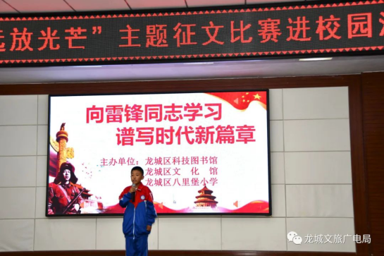 根据共青团龙城区委《关于开展“学雷锋月”集中活动实施方案》文件精神,为引导广大少年儿童向雷锋同志学习,争做雷锋精神的继承者、践行者、传播者。龙城区科技图书馆、龙城区文化馆、龙城区八里堡小学联合开展以“向雷锋同志学习·谱写时代新篇章”为主题的“学雷锋月”系列活动暨“小小螺丝钉·永远放光芒”主题征文比赛进校园活动。