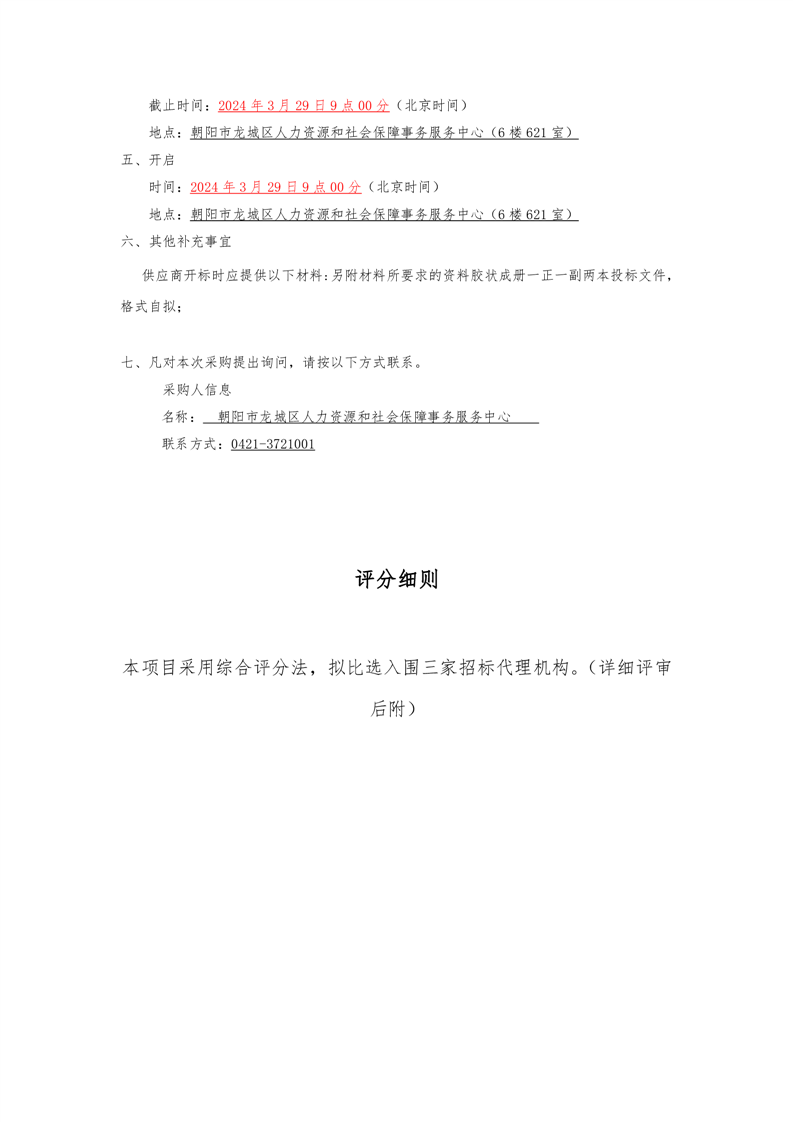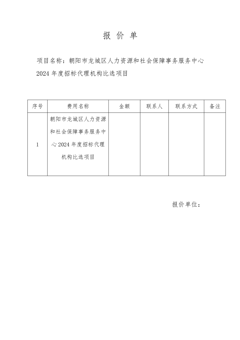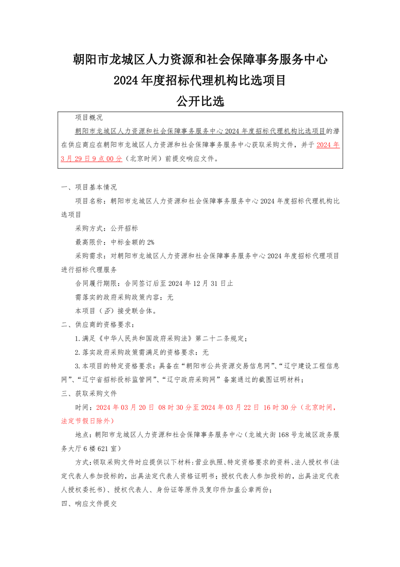 朝阳市龙城区人力资源和社会保障事务服务中心2024年度招标代理机构比选项目公开比选